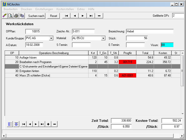 Über 9 kombinierbare Kriterien sind Werkstücke, bzw. CNC-Programme