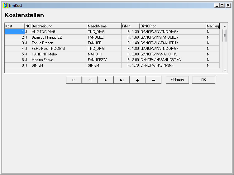 Handelt es sich bei einem Eintrag um eine CNC-Maschine, muss