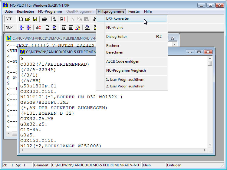 an der Maschine als ISO-Programme erstellt wurden, in das DXF Format