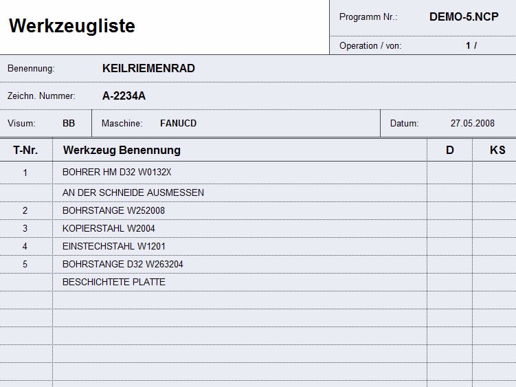 Listengenerator zur Verfügung. Werkzeug- und Arbeitsfolgetexte