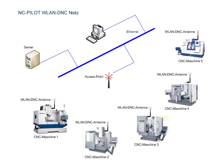 • Keine Kabel zwischen PC und CNC-Maschinen erforderlich